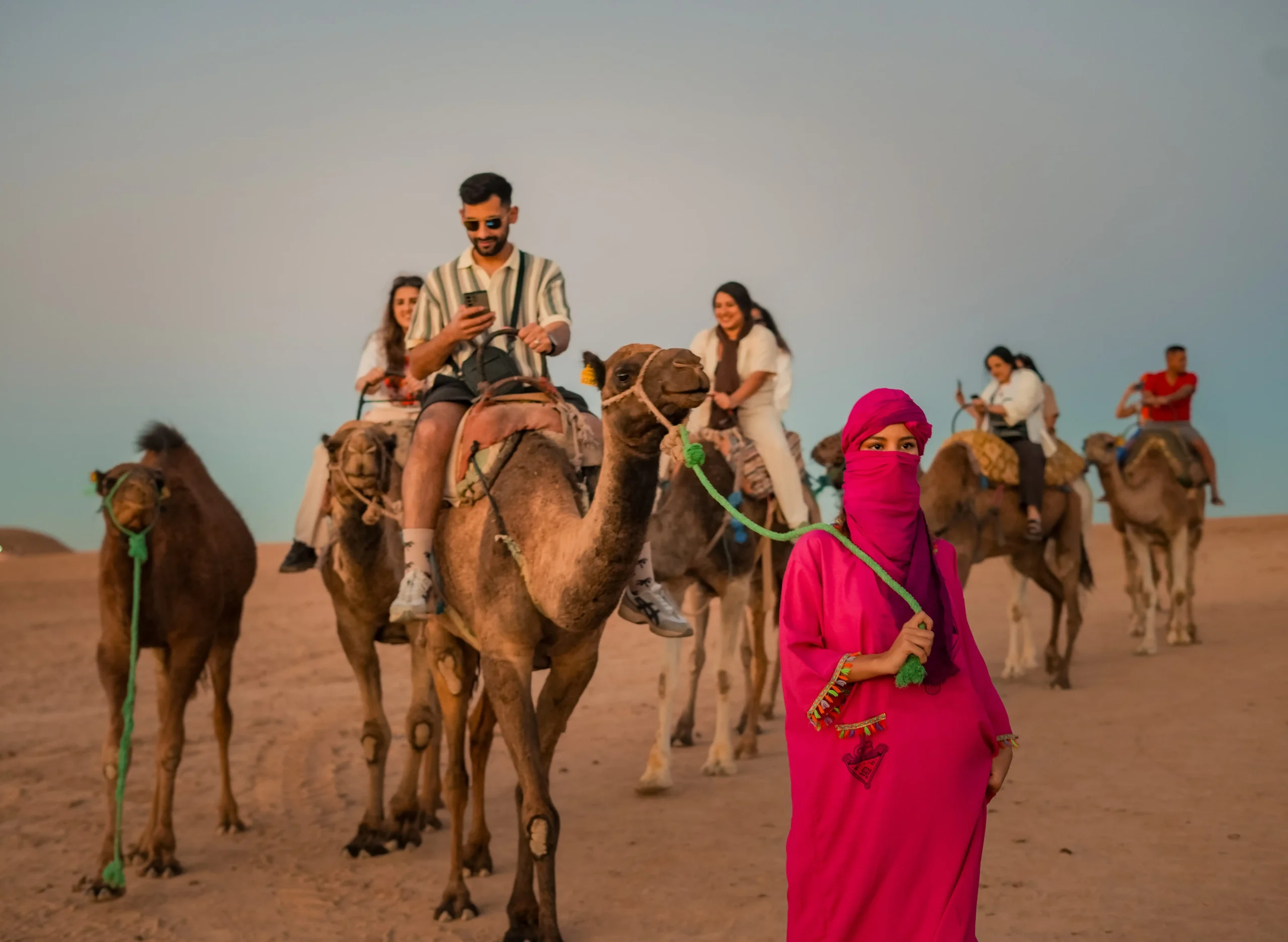Enjoy a 30-minute or 1-hour camel ride, departing directly from Kal Tenere Agafay Luxury, our exclusive camp in the heart of the enchanting Agafay Desert. Guided by our experienced camel driver, you will traverse the mesmerizing rocky terrain, surrounded by rolling dunes and breathtaking panoramic views. Whether you prefer a brief adventure or a more extended journey, the rhythmic sway of your camel allows you to fully immerse yourself in the tranquil beauty of the desert. As the soft light dances across the hills and the horizon stretches endlessly, this experience promises unforgettable moments of serenity and wonder.